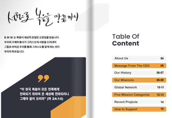 해외선교 2023 B.M.W. 브로셔 페이지 정보 작성자 BMW미션쪽지보내기 메일보내기 자기소개 아이디로 검색 전체게시물쪽지보내기 메일보내기 자기소개 아이디로 검색 전체게시물 작성일2023.11.10 08:42 조회수 7,824 글씨크기 + - 본문 아래 링크를 클릭하시면 보실 수 있습니다. https://online.fliphtml5.com/lloiy/mzlc/ 추천 0 페이스북 공유 트위터 공유 이전글진정한 행복이란? 23.11.22 다음글의료선교사를 양성을 위한 전문웨비나-한국연합회 보건부 23.10.27 댓글 0 댓글목록 등록된 댓글이 없습니다. 목록