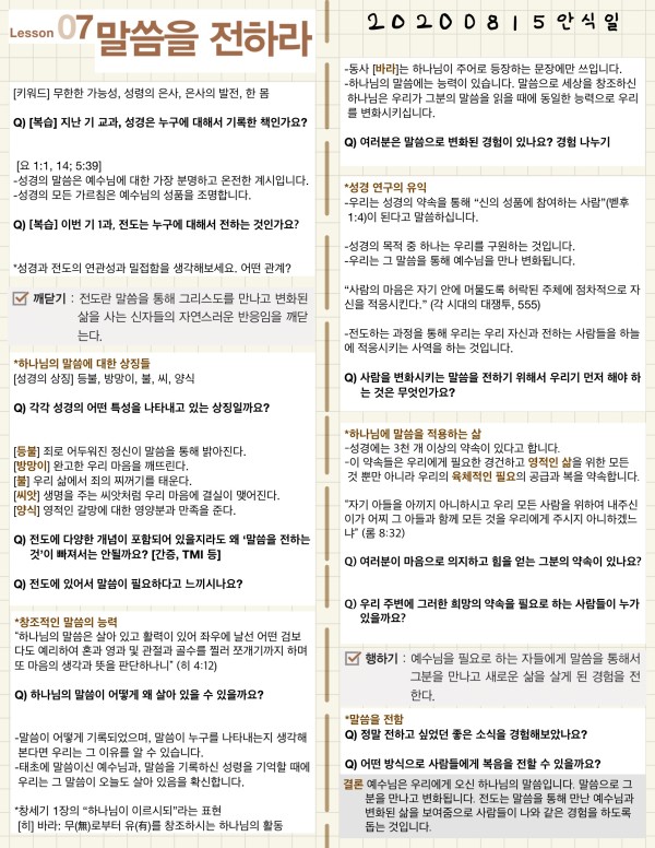 '청년'을 위한 교과 20년 3기 7과 [말씀을 전하라] - 하나님의 선교에 참여하는 기쁨