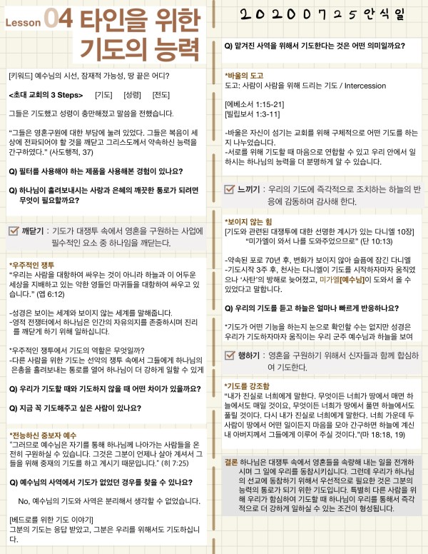 '청년'을 위한 교과 20년 3기 4과 [타인을 위한 기도의 능력] - 하나님의 선교에 참여하는 기쁨 > 안교교과
