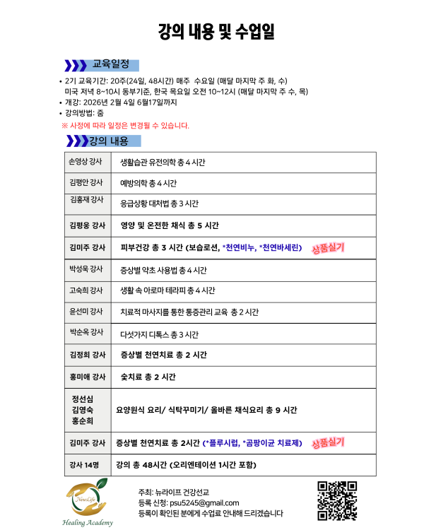 힐링아카데미 교육에 대한 안내문은 포스타 사진과 프로그램을 참고하세요.