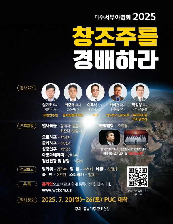 지역교회 2025 서부야영회 "창조주를 경배하라" 페이지 정보 작성자 베너관리자쪽지보내기 메일보내기 자기소개 아이디로 검색 전체게시물쪽지보내기 메일보내기 자기소개 아이디로 검색 전체게시물 작성일2025.05.14 18:48 조회수 7,221 글씨크기 + - 본문 미주 서부야영회 2025"창조주를 경배하라" 추천 0 페이스북 공유 트위터 공유 이전글산불 헌금 감사 인사 25.05.19 다음글마라나타 찬양 선교단 미주공연 25.05.14 댓글 0 댓글목록 등록된 댓글이 없습니다. 목록
