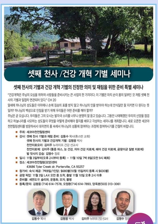 기타 셋째 천사 기별과 건강 개혁 기별 세미나 페이지 정보 작성자 peterkim쪽지보내기 메일보내기 자기소개 아이디로 검색 전체게시물쪽지보내기 메일보내기 자기소개 아이디로 검색 전체게시물 작성일2024.10.11 05:46 조회수 8,419 글씨크기 + - 본문 예수님의 재림을 고대하는 성도들을 위한 특별 세미나 추천 1 페이스북 공유 트위터 공유 이전글제34회 남가주 한인재림교회 연합찬양제 24.10.31 다음글남가주 오렌지 중앙 교회 창립 23주년 기념 건강 EXPO 일정소개 24.10.10 댓글 0 댓글목록 등록된 댓글이 없습니다. 목록